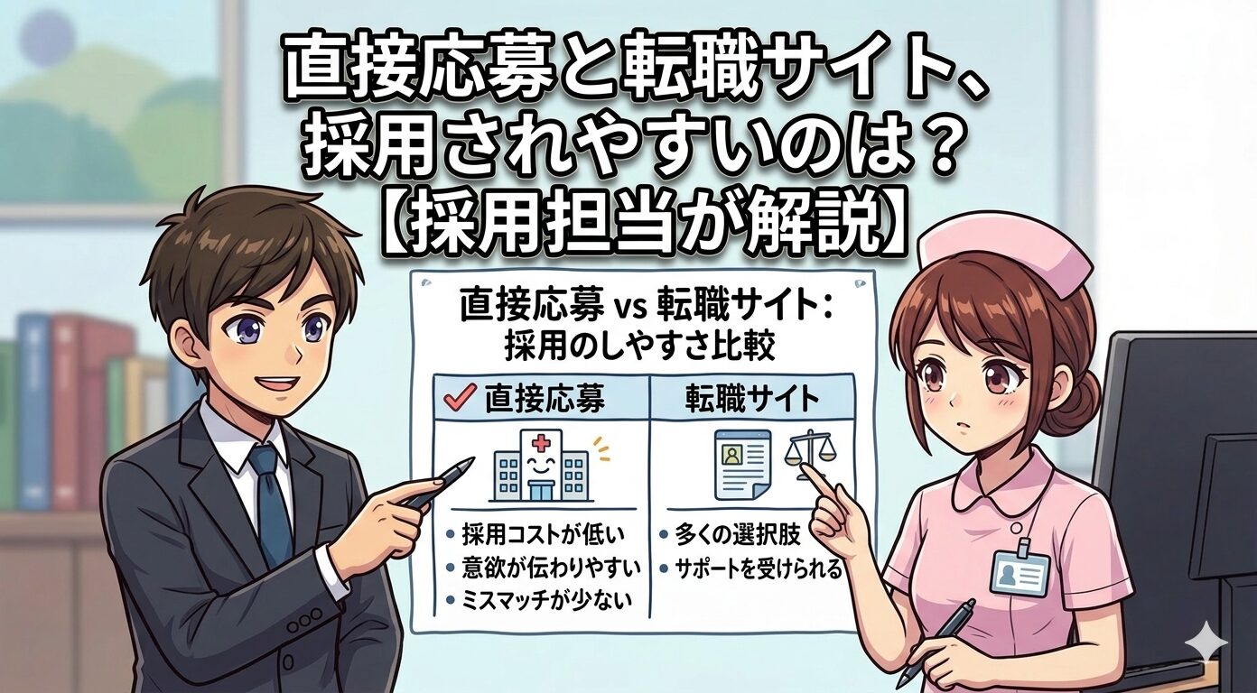 「絶対にあの病院で働きたい」という強い志望動機がある場合、直接応募の方が熱意が伝わりやすいです。また、その病院が転職サイトに求人を出していないケースもあるため、直接応募が唯一の選択肢になることもあります。