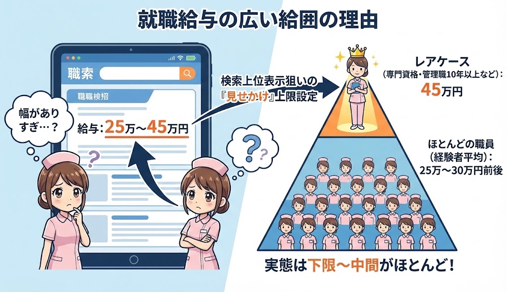 ① 給与幅が広すぎる(例:25万〜45万円)